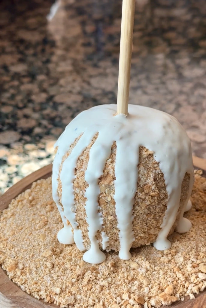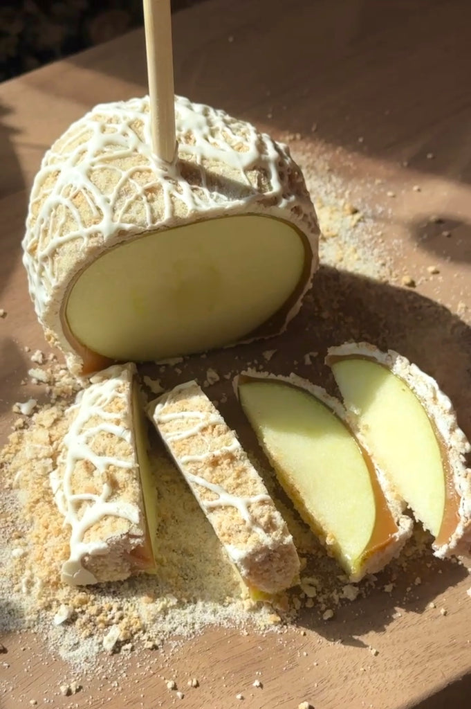 Delicious, crisp Granny Smith apples smothered in 100% homemade caramel and mouthwatering toppings. This Pumpkin Spice apple features rich, melted ribbons of white chocolate with our signature pumpkin spice mixture!